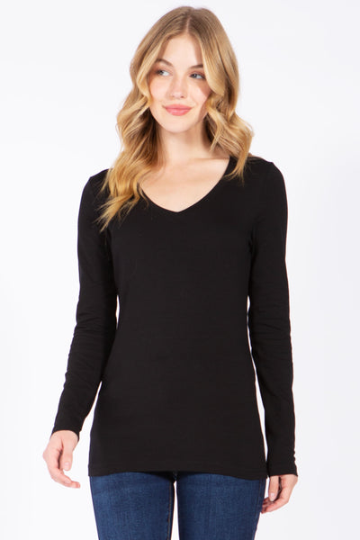 Perfect for layering, this V-neck long sleeve tee features a smooth, flattering fit and just the right amount of stretch for everyday comfort.